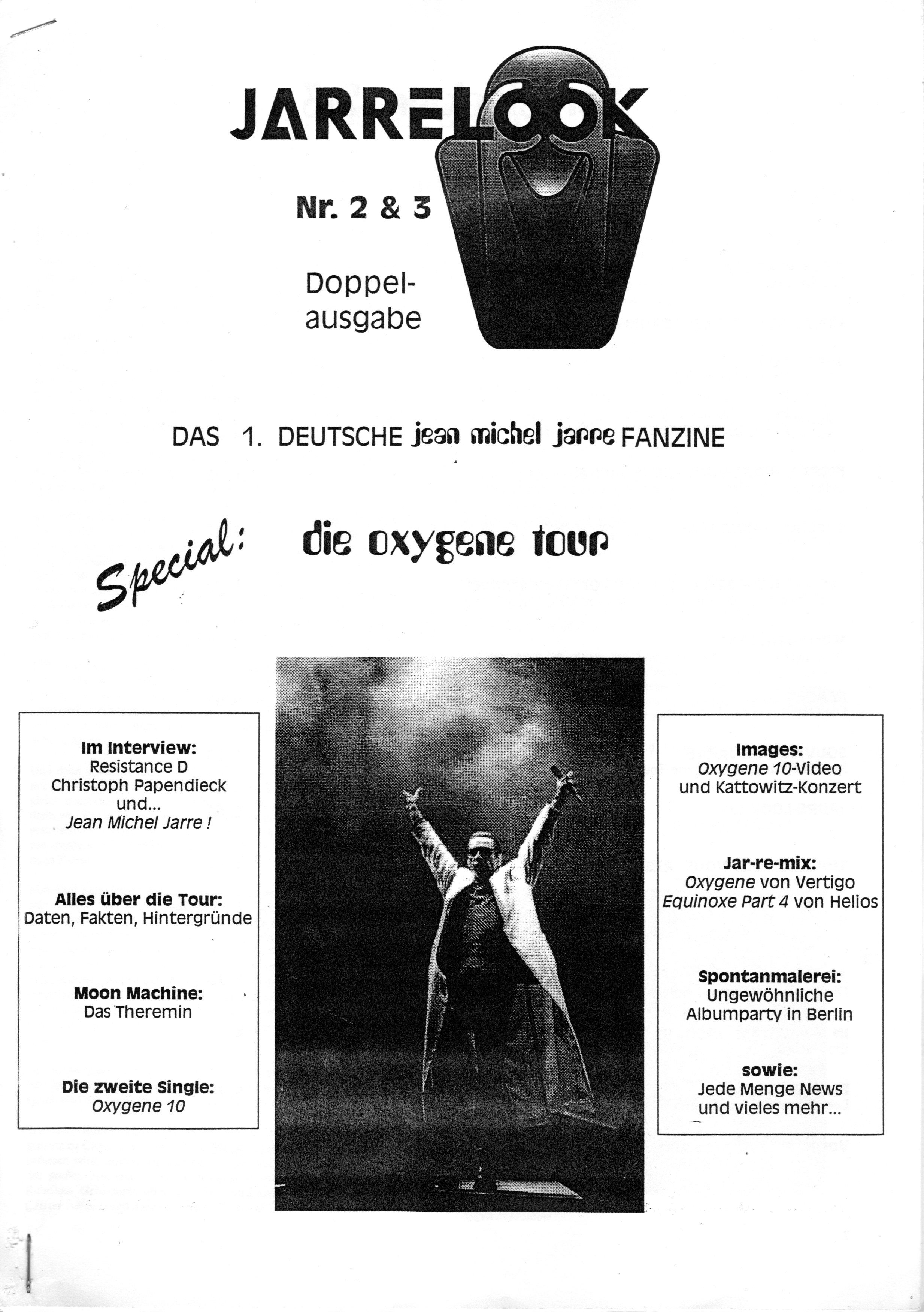Nach dem ersten Deutschland-Konzert von Jean-Michel (1993 in der Berliner Waldbühne) fanden sich einige deutsche Fans zusammen, die sich über ihren Lieblingsmusiker austauschten und beispielsweise auch zum "Concert Pour La Tolérance" 1995 am Pariser Eiffelturm fuhren. Nachdem es keine deutschsprachige Infoquelle über JMJ gab, nahmen die Fans das dann selbst in die Hand: Besuche und eigene Stände bei internationalen Fantreffen und Anfang 1997 dann eine Begegnung mit dem großen Meister höchstselbst, bei dem wir ihm das Konzept und das ursprüngliche Logo für das geplante Fanzine präsentierten, welches er kurzerhand mit "Good luck and thanks a lot!" signierte. Als er im Mai 1997 dann mit seiner "Oxygene-Tour" auch in Deutschland unterwegs war, konnten wir ihm das erste Exemplar von "Jarrelook Nr. 1" quasi druckfrisch in die Hand geben.
