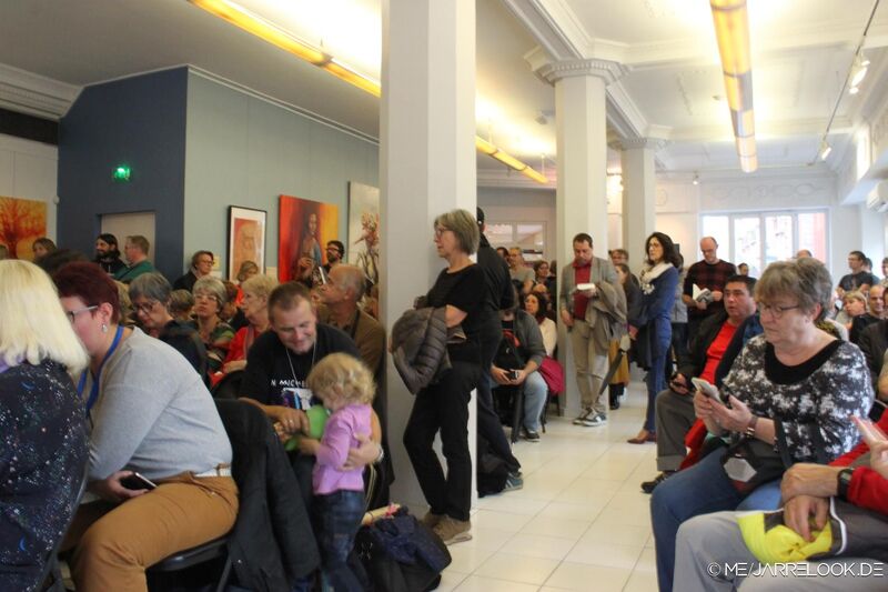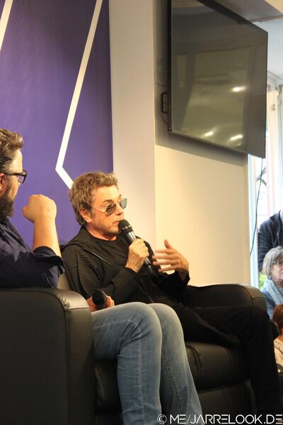 Anschließend konnten auch aus dem Publikum noch Fragen gestellt werden. Ein kleiner Junge, der sich zunächst nicht traute, fasste sich dann doch ein Herz und fragte Jean-Michel, welches Konzert denn sein persönliches Lieblingskonzert gewesen sei. Jean-Michel antwortete, dass das Konzert in seiner Heimatstadt Lyon für ihn eine spezielle Bedeutung habe. Dass die Bühne an der Stelle gestanden habe, wo er früher mit seinen Großeltern spazieren ging, sei etwas ganz Besonderes gewesen.