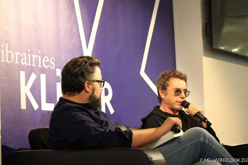 Da Jean-Michels Zug etwas Verspätung hatte, begann die Veranstaltung mit ihm etwa eine halbe Stunde später. Unter großem Beifall erklomm Jean-Michel das Podium und ließ sich dort gemeinsam mit einem Interviewer auf einem Sofa nieder. Die gestellten Fragen betrafen u.a. Ron McNair und das Houston-Konzert, aber auch das schwierige Verhältnis zu Jarres Vater Maurice. Jean-Michel erklärte dabei auch ganz offen, dass es Auseinandersetzungen um das Erbe gegeben habe, da er und seine Schwester praktisch vom Vater enterbt worden seien.
