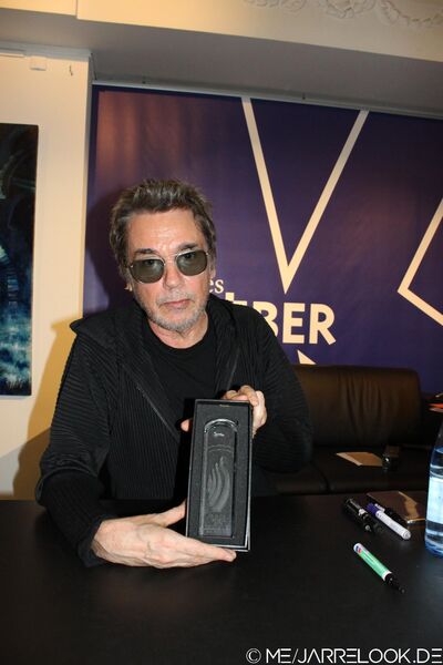 Nach etwa einer halben Stunde waren dann die Fragen gestellt und Jean-Michel machte sich daran, den Anwesenden nicht nur sein Buch, sondern auch zahlreiche andere Gegenstände, neben Schallplatten und Box-Sets u.a. auch zwei Keyboards und einen über und über mit Jarre-Bildern tätowierten Oberkörper zu signieren.