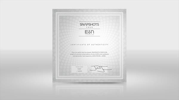 Auf seiner Facebookseite hat Jean-Michel ein Video gepostet, auf dem man ihm beim Auspacken der "Snapshots From 'Eon'"-Box zusehen kann. Wie er erklärt, wollte er für die Box nur hochwertigste Materialien verwenden. So ist die Box selbt mit einem Magnetverschluss versehen und glänzt metallisch. Die enthaltenen Tonträger enthalten die ersten musikalischen Schritte des "Eon"-Projekts. Teilweise seien musikalische Elemente zu hören, die in der schlussendlich veröffentlichten App gar nicht mehr enthalten seien. Er habe diese Anfänge aber festhalten wollen.